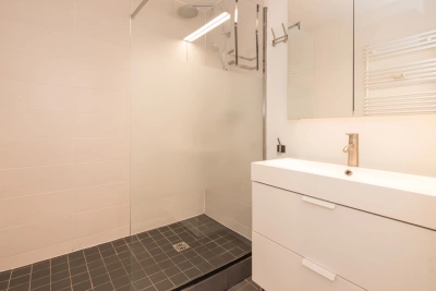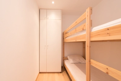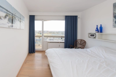 Ruim appartement gelegen op de 4de verdieping van Residentie Aldis bestaande uit een zonnige woonkamer met uniek zeezicht en terras vooraan, digitale TV en WIFI, moderne keuken met vaatwas ..., badkamer met douche en lavabo, afzonderlijk toilet. Twee slaapkamers achteraan, waarvan één met een dubbel bed en één met een stapelbed. Fietsenberging in de residentie. Huisdieren en roken zijn niet toegelaten.