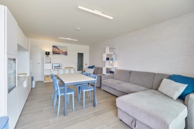 Geniet van het prachtige zeezicht vanaf de 5de verdieping van Residentie Aldis in dit zonnige appartement. De lichtrijke leefruimte met digitale tv en wifi leidt naar een aangrenzend terras. De aparte keuken beschikt over een inductiekookplaat. Met twee ruime zetelbedden en voldoende opbergruimte biedt dit appartement comfort en functionaliteit. De badkamer is voorzien van een douche en er is een afzonderlijk toilet. Bovendien ligt het appartement op een steenworp afstand van het levendige centrum.