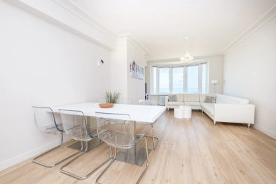 Prachtig, volledig vernieuwd appartement gelegen op de promenade nabij het Monument der Zeelieden, 7de verdieping bestaande uit een inkomhall met vestiairekast, woonkamer met prachtig zicht op zee, digitale TV en WIFI, afzonderlijke ingerichte keuken met vaatwas, ..., badkamer met ligbad/douche en lavabo, berging met wasmachine en droogkast; afzonderlijk toilet en 2 ruime slaapkamers achteraan (2 dubbele bedden, stapelbedden). Huisdieren en roken ten strengste verboden.