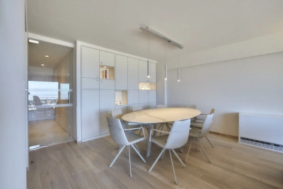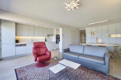 Heel mooi, volledig vernieuwd appartement gelegen op de wandelpromenade op de 6° verdieping : inkom met ingemaakte vestiaire kast en apart toilet, ruime woonkamer met prachtig zeezicht en ruim terras, digitale TV en WIFI, open keuken (ingericht met vaatwas, oven, ...), berging met wasmachine en droogkast, ruime moderne badkamer met douche, dubbele lavabo en toilet en 2 slaapkamers achteraan (2 enkele bedden en één dubbel bed). Het terras achteraan is vanuit beide slaapkamers bereikbaar. Huisdieren en roken ten strengste verboden.