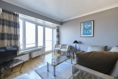 Heel aangenaam appartement gelegen op de promenade nabij het Monument der Zeelieden op een 9de verdieping bestaande uit een woonkamer met uniek zicht op zee, digitale TV en WIFI, 2 slaapbanken, afzonderlijke keuken met vaatwas, vernieuwde badkamer met douche en lavabo, afzonderlijk toilet en één slaapkamer met een dubbel bed. Huisdieren niet toegelaten.