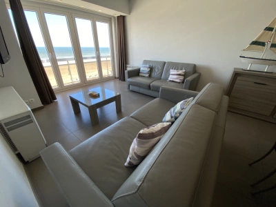 Modern ingericht appartement met frontaal zeezicht vlakbij het Casino. Indeling: woonkamer met open keuken, badkamer met inloopdouche en toilet, apart toilet, slaapkamer met stapelbed, tweede grote slaapkamer met tweepersoonsbed en stapelbed, ruimte kan worden afgesloten met schuifwand. Voorzien voor 8 personen.