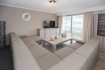 Prachtig hoekappartement aan de zonnekant met zijdelings zeezicht. Indeling: ruime living met open keuken, drie ruime slaapkamers, badkamer met douche en een apart toilet. Voorzien voor 10 personen.