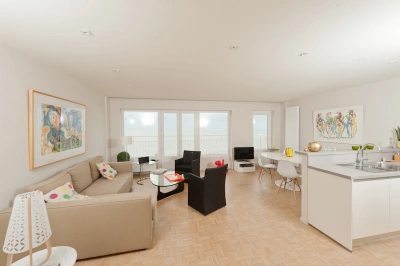 Comfortabel dijkappartement. Gezellige woonkamer met vensters tot beneden,Huisdieren toegelaten Open keuken met vaatwas, badkamer met ligbad. Slaapkamer met boxspring. Het appartement is gelegen op het derde verdiep.