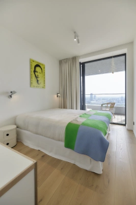 Luxueus appartement met 2 slaapkamers ligt op de 20ste verdieping van de Ensortower. De living en de slaapkamers geven uit op een ruim zuidgericht terras van waarop u een spectaculair zicht heeft over de zee en de stad. Het gloednieuwe appartement is met veel liefde voor kunst en design ingericht en heeft een luxueuze afwerking. De lichtrijke living met open keuken is voorzien van alle comfort. De slaapkamers hebben elk een eigen badkamer en zijn voorzien van boxspring bedden met een hoogwaardige pocketverenmatras. Het terras, met een adembenemend uitzicht over de zee, de stad en de vaargeul, is voorzien van comfortabele lounge zetels. Zorgeloos parkeren kan in de autostaanplaats die zich in het gebouw bevindt, fietsen kunnen veilig terecht in de afgesloten fietsenstalling. Het appartement ligt op loopafstand van het strand. In de buurt zijn enkele hippe restaurants en trendy winkels, de stad is vlot bereikbaar via een gratis overzetboot (vaart om de 15 min). Roken en huisdieren zijn niet toegelaten.