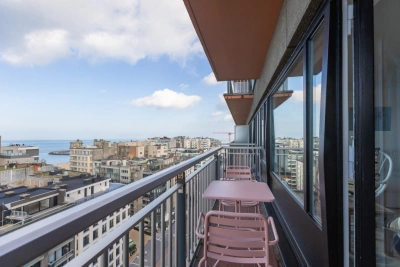 Prachtig appartement op de 13e verdieping met twee terrassen en een fantastisch uitzicht op zee. Dit centraal gelegen appartement in het hart van Oostende biedt een ideale combinatie van comfort en gemak. Geniet van de nabijheid van winkels, restaurants en alle voorzieningen die het bruisende stadscentrum te bieden heeft. Het smaakvol ingerichte appartement beschikt over een ruime, lichte woonkamer, twee slaapkamers, en twee ruime terrassen waar u kunt ontspannen en genieten van het schitterende uitzicht op de zee en het centrum van Oostende. Huisdieren zijn toegestaan en er is de mogelijkheid om een garage in de residentie bij te huren.