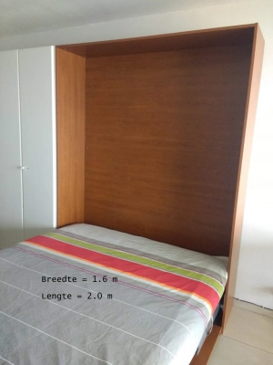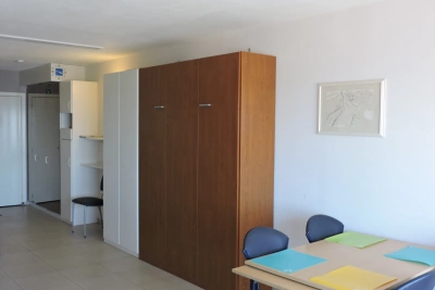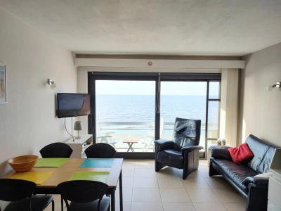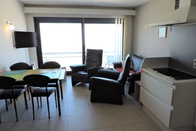 Moderne studio met frontaal zeezicht. Indeling: living met kastbed, terras, open keuken, badkamer met douche en toilet en een slaaphoek met stapelbed. Private kelder voor 2 fietsen inbegrepen. Voorzien voor 4 personen.