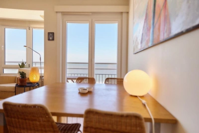 Dit prachtige drie slaapkamer appartement is een pareltje aan de kust. De grote ramen zorgen voor een overvloed aan natuurlijk licht in de ruime woonkamer, die uitkomt op een zonnig terras met een prachtig uitzicht op de zee. De charmante keuken is uitgerust met alle nodige voorzieningen, inclusief een wasmachine en droogkast. Slaapkamer één is voorzien van een groot dubbelbed en voldoende opbergruimte in de ingebouwde kasten. Slaapkamer twee heeft een enkel bed en de laatste slaapkamer beschikt over een groot tweepersoonsbed en heeft bovendien een aangrenzend terrasje. Elke kamer heeft ook een eigen lavabo. De badkamer is voorzien van een mooi ligbad en een enkele lavabo, terwijl het afzonderlijke toilet extra privacy biedt. Kortom, dit appartement biedt alle luxe en comfort die u nodig heeft voor een heerlijk verblijf aan zee. Huisdieren en roken verboden.
