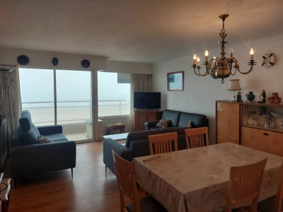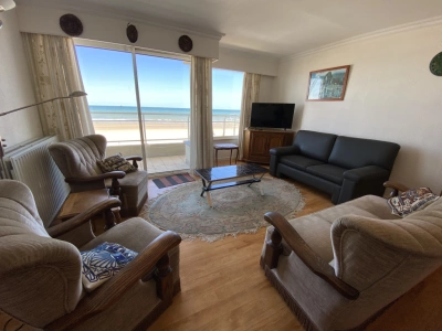 Ruim appartement met frontaal zeezicht en terras. Indeling: inkom, grote woonkamer met zetelbed, keuken, badkamer met ligbad, apart toilet en 2 slaapkamers. Voorzien voor 6 personen.