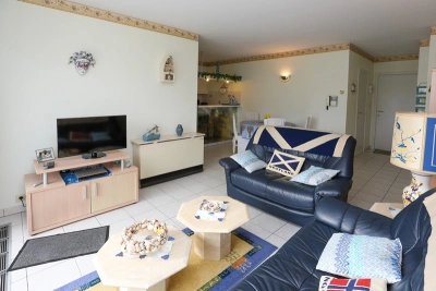 Luxe appartement in villa-complex Golf Azur, op wandelafstand van de dijk. Gelegen op gelijkvloers met groot zuidgericht zonneterras (ganse dag zon). Zicht op de vijver, toegang openlucht zwembad. Garage inclusief.