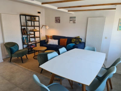 Gerenoveerd appartement met 2 slaapkamers op een zucht van zee. Het appartement bevindt zich op de derde verdieping van een gebouw zonder lift . Indeling : leefruimte met open keuken , 2 slaapkamers waarvan 1 met dubbel bed en 1 met 2 enkele bedden , apart toilet en ruime badkamer met inkoopdouche . Een parkeerplaats vooraan het gebouw .
