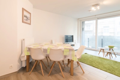 Prachtig afgewerkt appartement met 2 slaapkamers, gelegen op het eerste verdiep, in het hartje van Middelkerke. Alle winkels vlakbij. Open keuken met alle comfort. Apart toilet. Badkamer met inloopdouche. Ruim terras aan de voorzijde. Een slaapkamer met dubbel bed en een slaapkamer met een enkel bed en stapelbed. Voorzien van internet en digtale televisie. Een echte aanrader !