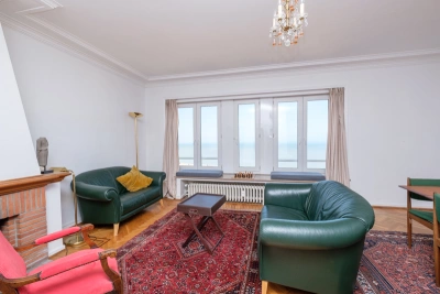 Mooi, gezellig appartement gelegen op de wandelpromenade naast het Casino Kursaal, 6de verdieping bestaande uit woonkamer met prachtig zicht op zee, digitale TV, WIFI, afzonderlijke keuken ingericht met vaatwas, microgolfoven,... met balkon, badkamer met ligbad/douche, lavabo en toilet, afzonderlijk toilet en 2 slaapkamers waarvan 1 met zeezicht (1 dubbel bed, 3 enkele bedden). De gehele flat beschikt over eiken parketvloeren. En er zijn Perzische tapijten in alle kamers geplaatst. Huisdieren en roken verboden.