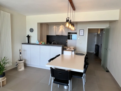 Gezellig appartement met frontaal zeezicht vlakbij het Casino. Indeling: living met open keuken, badkamer met bad, apart toilet, twee ruime slaapkamers en klein terras achteraan. Voorzien voor 5 personen.