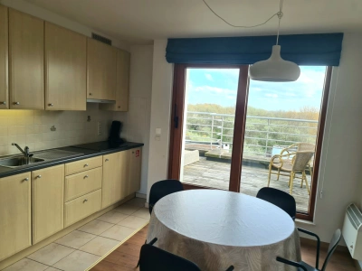 Gerenoveerde penthouse met 2 slaapkamers en 2 grote zonneterrassen vlakbij centrum en zee in Oostduinkerke. Indeling : inkomhall , leefruimte met open keuken , 2 slaapkamers waarvan 1 met dubbel bed en 1 met stapelbed , badkamer met toilet, douche en lavabo . Zowel vanuit de living als vanuit de slaapkamers heeft u toegang tot de ruime zonneterrassen voorzien van tuinmeubilair. Gratis WIFI ! Aparte garagebox inbegrepen.