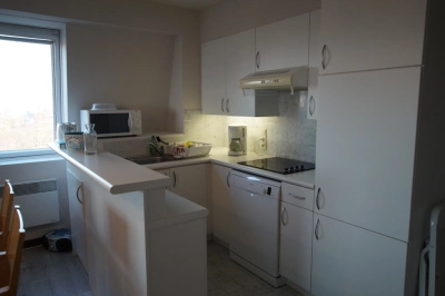 Heel mooi, vernieuwd appartement gelegen op de zeedijk tegenover de Paardenrenbaan, 8ste verdiep in de Residentie Royal Palace bestaande uit woonkamer met prachtig zicht op zee en terras vooraan, zetelbed voor 2 personen, digitale TV en WIFI, afzonderlijke keuken met vaatwas en wasmachine, badkamer met ligbad/douche en lavabo, afzonderlijk toilet en één slaapkamer met dubbel bed en uniek zicht op zee. Autostandplaats in de Residentie inbegrepen. Huisdieren en roken verboden.
