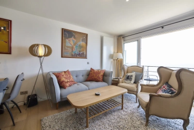 Volledig vernieuwd appartement gelegen in residentie Royal Palace op de 13e verdieping bestaande uit een inkomhall met vestiairekast, woonkamer met prachtig zicht op zee en terras vooraan. Digitale TV en WIFI aanwezig. Open , volledig ingerichte keuken (vaatwas, wasmachine/droogkast...), afzonderlijk toilet, twee slaapkamers achteraan, telkens met dubbel bed. de ene kamer heeft toegang tot een inloopdouche en een wastafel. Badkamer met wastafel, toilet en inloopdouche. Autostandplaats inbegrepen. Huisdieren en roken zijn niet toegelaten.