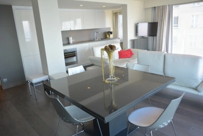 Zonnig hoekappartement met frontaal zeezicht. Vanuit de woonkamer heeft men een fantastisch zicht op zee, strand, casino en Zeedijk. Indeling : woonkamer met open keuken, badkamer met douche, apart toilet, 2 slaapkamers en balkon. Voorzien voor 4 personen.