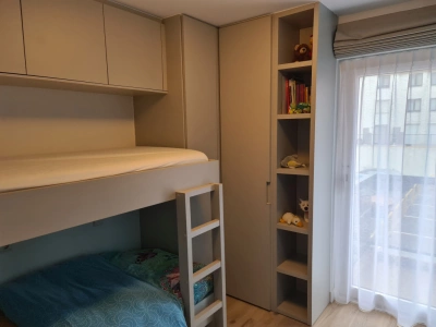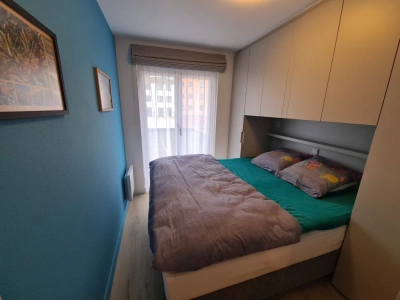 Gezellig appartement gelegen op de eerste verdieping, vlakbij de zeedijk met zeezicht vanuit een zijstraat. Het appartement telt twee slaapkamers. 1 slaapkamer met dubbelbed en 1 met stapelbed. Er is een badkamer met douche en apart toilet. Zowel vooraan als achteraan (zuidgericht) is er een balkon. Een staanplaats achter het gebouw is inbegrepen in de prijs!