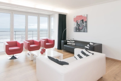Zeer ruim en rustig gelegen luxe 2-slaapkamerappartement op 50 meter van zee. Zeezicht vanuit de woonkamer. Alle comfort aanwezig. Hoekterras en garage. Digitale T.V. + Wi-Fi inbegrepen! Geen huisdieren toegelaten.