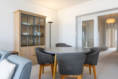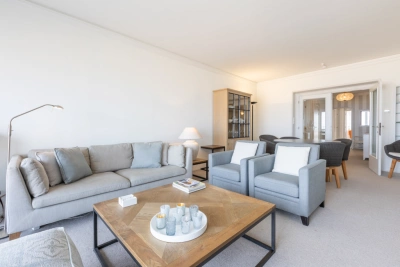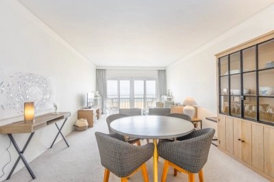 Welkom in dit prachtige, volledig luxueus ingerichte 2-slaapkamer appartement in Residentie Splendid, perfect gelegen tussen het Kursaal en de Koninklijke Villa aan het grote strand van Oostende. Gelegen op de 4e verdieping, geniet dit appartement van een overvloed aan natuurlijk licht en een stijlvolle ambiance. Binnen treft u een ruime inkomhal die leidt naar een schitterende woonkamer met een adembenemend frontaal zeezicht, waar u kunt ontspannen en genieten van alle moderne gemakken, zoals wifi en digitale TV. De ruime keuken is ontworpen met een balkon voor de perfecte ochtendkoffie. De eerste slaapkamer biedt eveneens een prachtig zeezicht en beschikt over een comfortabel dubbel bed, grenzend aan een elegante badkamer met ligbad-douche en wastafel. De tweede grote slaapkamer is uitgerust met twee enkele bedden, perfect voor gasten of familie, en heeft een aangrenzende douchekamer met wastafel. Voor extra comfort is er een aparte toilet beschikbaar. Als kers op de taart biedt dit appartement een garagebox in de residentie en een handige fietsenberging. Om de rust en luxe te behouden, zijn roken en huisdieren niet toegestaan. Dit is een unieke kans om te wonen in een exclusief stukje Oostende, waar comfort en klasse samenkomen met een ongeëvenaard uitzicht op de zee.
