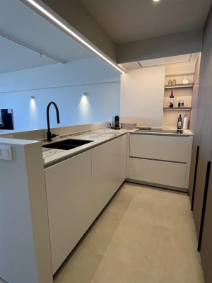 Zeer modern appartement met frontaal zeezicht. Indeling: woonkamer met open keuken, 2 slaapkamers, badkamer met douche,apart toilet, berging en kelder.Voorzien voor 6p.