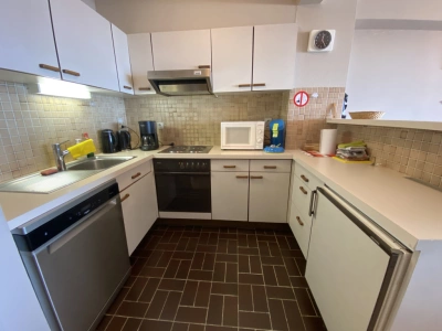 Gezellig appartement met zicht op zee, centraal gelegen. Indeling: woonkamer met terras, open keuken, 2 slaapkamers, badkamer met douche en groot terras aan achterzijde. Voorzien voor 6 personen.