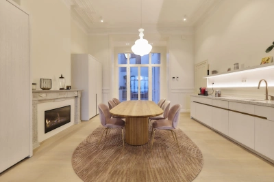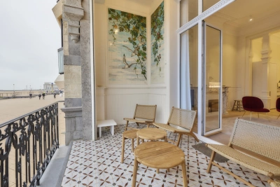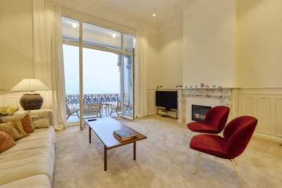 Unieke bel-étage met zicht op zee en drie slaapkamers. Het appartement bestaat uit een ruime woonkamer uitgevend op de Albert I Promenade en de open erker, die afgesloten kan worden met een elektrisch rolluik. Aansluitend aan de woonkamer is de volledig ingerichte keuken. Aan de achterzijde is er een ruim balkon. Er is ook een ruime slaapkamer op dit niveau en een badkamer voorzien van ligbad, douche en dubbele lavabo en een afzonderlijk WC. In de hall van het appartement is er toegang tot de souterrain. Daar zijn twee ruime slaapkamers die uitgeven op een open binnenplaats, elk met hun eigen douchekamer en een afzonderlijk WC. Gemeenschappelijke fietsenberging in de residentie. Garagebox in de omgeving inbegrepen Roken en huisdieren zijn ten strengste verboden.