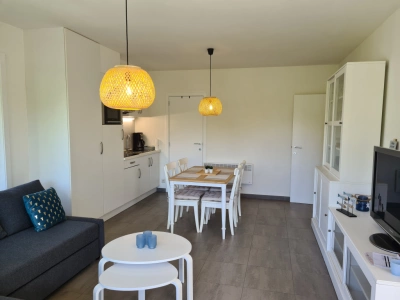 UIterst aangenaam en modern appartement met prachtig zicht . Op een zucht van zee en duinen. Indeling : gezellige leefruimte met open ingerichte keuken voorzien van keramisch fornuis, combi-oven enz. 2 slaapkamers waarvan 1 met dubbel bed en 1 met stapelbed , badkamer met douche en toilet . Terras met zicht op duinen. Gratis Wifi.