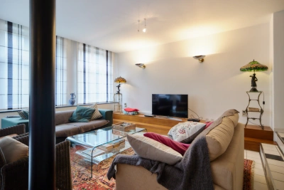 Aangenaam appartement op het gelijkvloers met 2 ruime slaapkamers. Aangenaam terras aan de achterzijde. Badkamer met ligbad en lavabo, apart toilet. Gezellige woonkamer met open keuken met alle comfort.