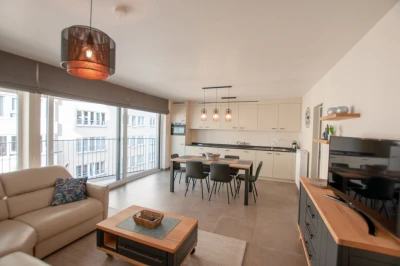 Mooi appartement met zijdelings zeezicht in een nieuwe residentie in Oostende. Alle voorzieningen aanwezig. Volledig ingerichte keuken, badkamers met inloopdouche, apart toilet, 2 slaapkamers met een tweepersoonsbed, 2p slaapbank in de woonkamer en een extra kinderbedje in de grotere slaapkamer. Gratis wifi beschikbaar. Uitstekende locatie nabij de zeedijk, winkelcentrum en op loopafstand van het treinstation.