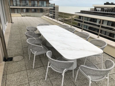 Ons penthouse duplex appartement met als naam "Les Impressionistes" is gelegen op de 8e en 9e verdieping in residentie Amadeus. Het gelegen op een top locatie aan het strand. Dit type appartement biedt vaak meer ruimte en privacy dan een traditioneel appartement omdat het over meerdere verdiepingen verdeeld is. Het appartement is heel ruim (135 m2 bewoonbaar oppervlak en 160 m2 terras ). Het is goed geïsoleerd (EPC=314 kWh/m2) en wordt elektrisch verwarmd.