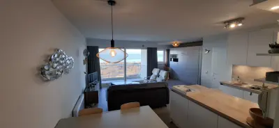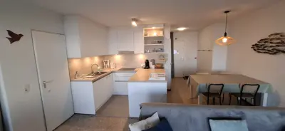 Prachtig gerenoveerd appartement met 1 slaapkamer en 1 slaaphoek.  Geschikt voor een gezin met twee kinderen of vier volwassen personen.  Er is een slaaphoek met dubbel bed van 160 bij 200 plus een divan die kan open geplooid worden voor een bed met dezelfde afmetingen.  Er is een aparte kinderkamer waar twee kinderen kunnen slapen in het uitklapbaar stapelbed.   Alle comfort is aanwezig voor een luxueus verblijf: frigo, afwasmachine, koffiezetapparaat en Senseo-apparaat, broodrooster, inductieplaten en voldoende keukengerief.  In de badkamer: kleine maar handige lavabo, inloopdouche en toilet.  Er is ook een smart TV en wifi. Het strand is op 50 meter en valt in de bewaakte zone. De wandeldijk ligt op 100 meter met alle mogelijkheden om te eten, te drinken of jezelf te verwennen.  Het uitzicht vanop het terras, waar je met vier personen gemakkelijk zit,  is ongezien voor de Belgische kust. Bemerking: het appartement is te huur van vrijdagnamiddag 16u tot vrijdagmiddag 12u de week er op.