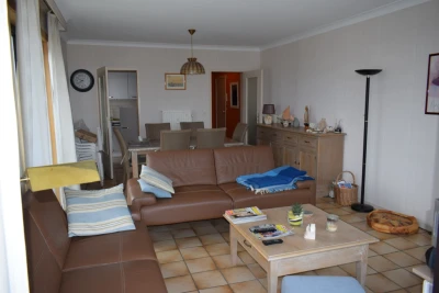 Mooi appartement (5 personen), twee kamers, gelegen tegenover de duinen en 50 m van het strand, in de stilte. Keuken, woonkamer, salon, badkamer (douche), WC, hal. 1 slaapkamer met stapelbed bedden 1 slaapkamer met tweepersoonsbed. Het appartement wordt omgeven door ruime terrassen. Gemakkelijk parkeren.