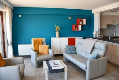 2 slaapkamers appartement voor 6 personen, grote woonkamer met terras, flatscreen TV, HI FI, digibox, DVD-speler, telefoon, volledig uitgeruste keuken, vaatwasser, berging met wasmachine, balkon aan de achterzijde, kelder, lokale fiets op de begane grond. wifi. Mogelijk een garage te huren op 400m. Prijs all-in (water, elektriciteit, verwarming, telefoon)