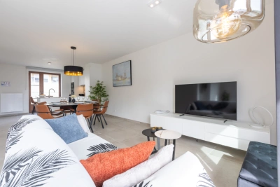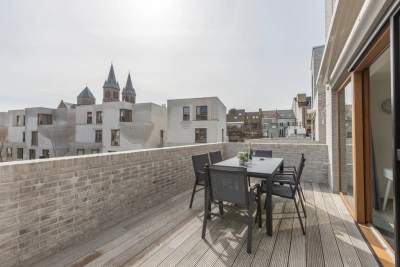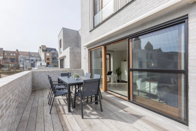 Dit prachtige duplex appartement bevindt zich in de nieuwbouwresidentie Rose d’Ivry, gelegen in een groene oase van rust, en op wandelafstand van de zeedijk. Binnenin wordt u begroet door een lichtrijke open keuken, ideaal voor het bereiden van heerlijke maaltijden terwijl u geniet van het gezelschap van uw dierbaren. De ruime woonkamer stroomt moeiteloos over in een zonnig terras, waar u kunt ontspannen en genieten van het prachtige uitzicht op de groene omgeving. Het appartement beschikt over drie comfortabele tweepersoonsslaapkamers, perfect voor gezinnen of gasten. De badkamer is voorzien van een dubbele wastafel en een inloopdouche. Er zijn twee afzonderlijke toiletten voor extra gemak, alsook twee afzonderlijke bergingen voor extra ruimte. In de residentie is zowel een autostandplaats beschikbaar als een fietsenberging.