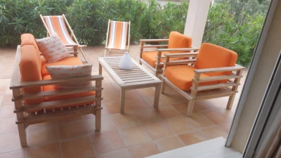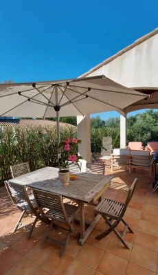 September promoties. Villa VOOR 8 PERSONEN MAXIMAAL, 4 slaapkamers met inbouwkasten, 2 badkamers waarvan 1 boven met bubbelbad. Volledig uitgeruste keuken. Zwembad 10mx5m verwarmd en veilig, poolhouse. Terras 140m2, ligstoelen, barbecue en plancha. Golf en tennis in de buurt.