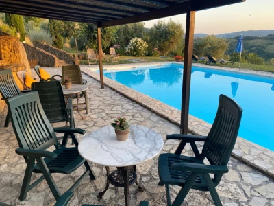 Absoluut heerlijke villa waar uitsluitend tevreden klanten geweest zijn, zie ook de vele reacties van klanten. Deze locatie is gelegen net buiten het dorp Pommerance, niet ver van Volterra, gelegen op een berg in het hart van Toscane. Dit prachtige huis, opgedeeld in twee vakantiewoningen, is geheel gerenoveerd in typisch Toscaanse stijl, maar volgens de Nederlandse standaard. Het maakt deel uit van een landgoed dat zich uitstrekt tot in het dal. Het landgoed is 3 hactare groot en bestaat onder andere uit een olijfgaard, grote tuin, en zwembad Vanaf de terrassen en het lager op de berg gelegen zwembad (12 x 6 m) heeft u een schitterend uitzicht over het glooiende landschap van Toscane, u vindt hier adembenemende zonsondergangen. 's Avonds zijn de weg naar het zwembad en het zwembad zelf schitterend verlicht zodat ook een late duik in het zwembad erg aantrekkelijk is. Een heerlijke locatie en mijn persoonlijke favoriet. Deze accommodatie biedt verschillende faciliteiten in de buurt aan. Deze kunt u bij de accommodatie opvragen. De weg naar de woning is geasfalteerd.
